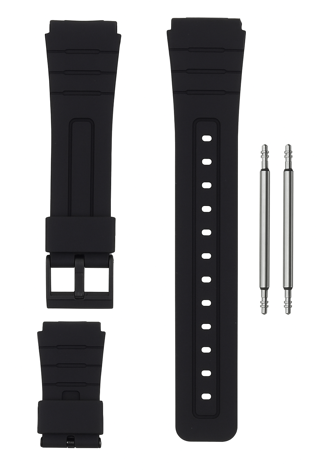 A pulseira compatível para os modelos de relógio F-91W, F-94W, F-105W e F-106W está disponível para envio imediato. Essa pulseira é projetada com uma fivela preta para garantir uma aparência elegante e compatível com os modelos mencionados. Além disso, ela também serve para a linha de relógios Aqua A81 e vários outros relógios que tenham o tamanho de 20 mm.